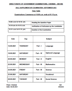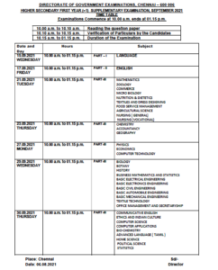 10th and 11th Supplementary Exam September 2021 | பத்தாம் வகுப்பு / மேல்நிலை முதலாம் ஆண்டு துணைத் தேர்வுகள் செப்டம்பர் 2021